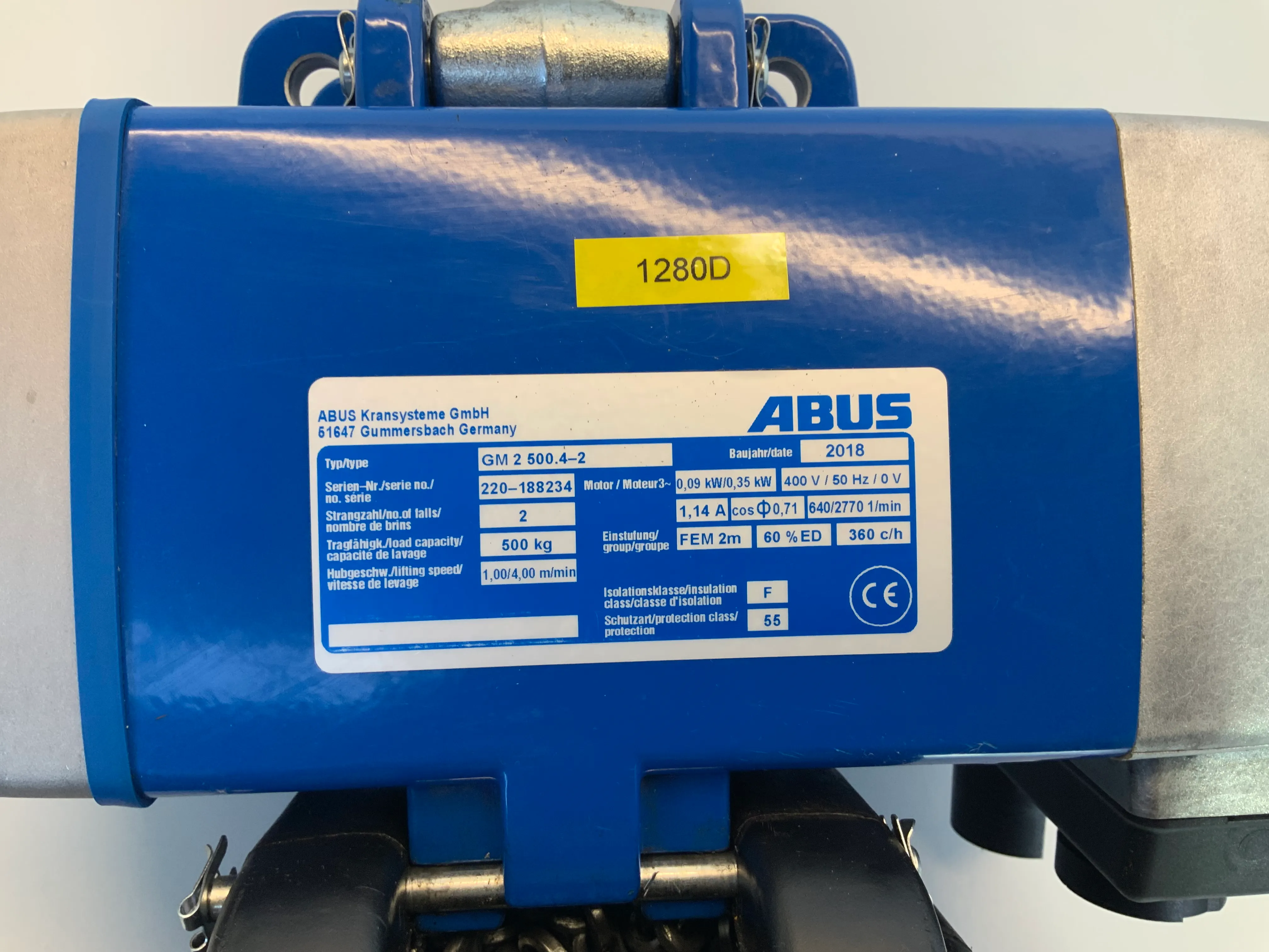 Es wird ein Säulenschwenkkran von der Marke ABUS verkauft, das die Tragfähigkeit von 500kg hat.