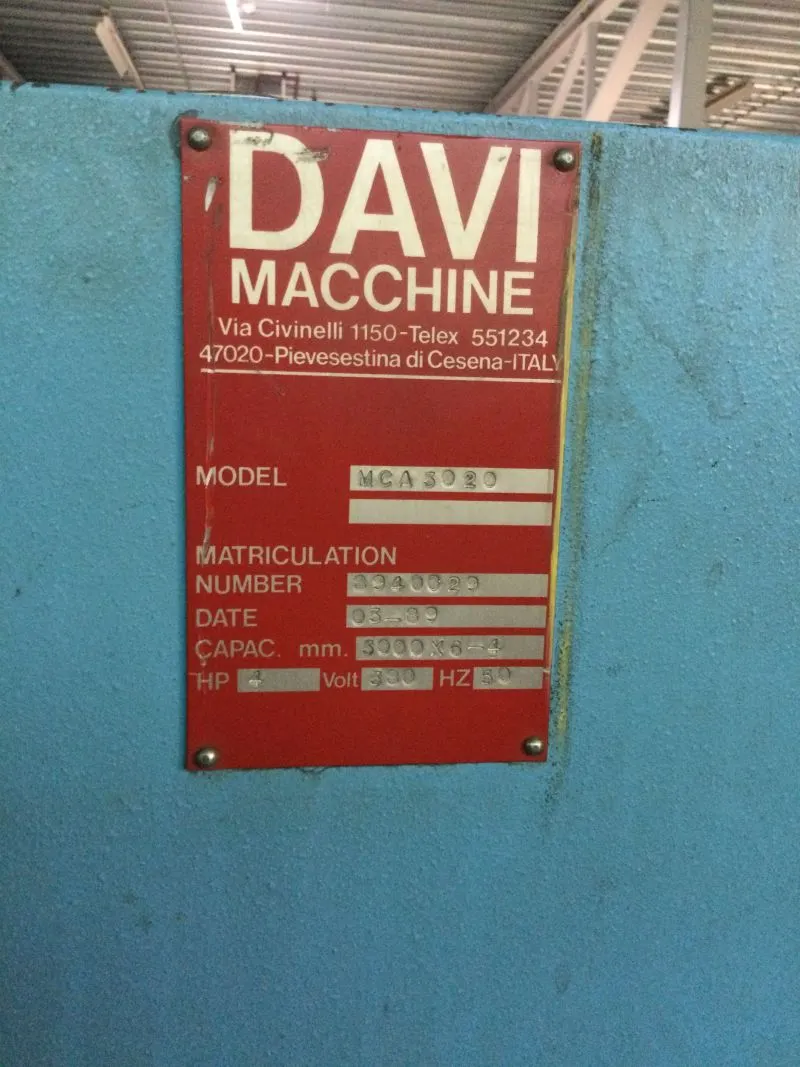 Die DAVI MCA 3020 ist eine bewährte 3-Walzen-Rundbiegemaschine aus Baujahr 1989 mit hydraulischem Klapplager. Ideal für die präzise Blechbearbeitung bei mittleren Materialstärken.