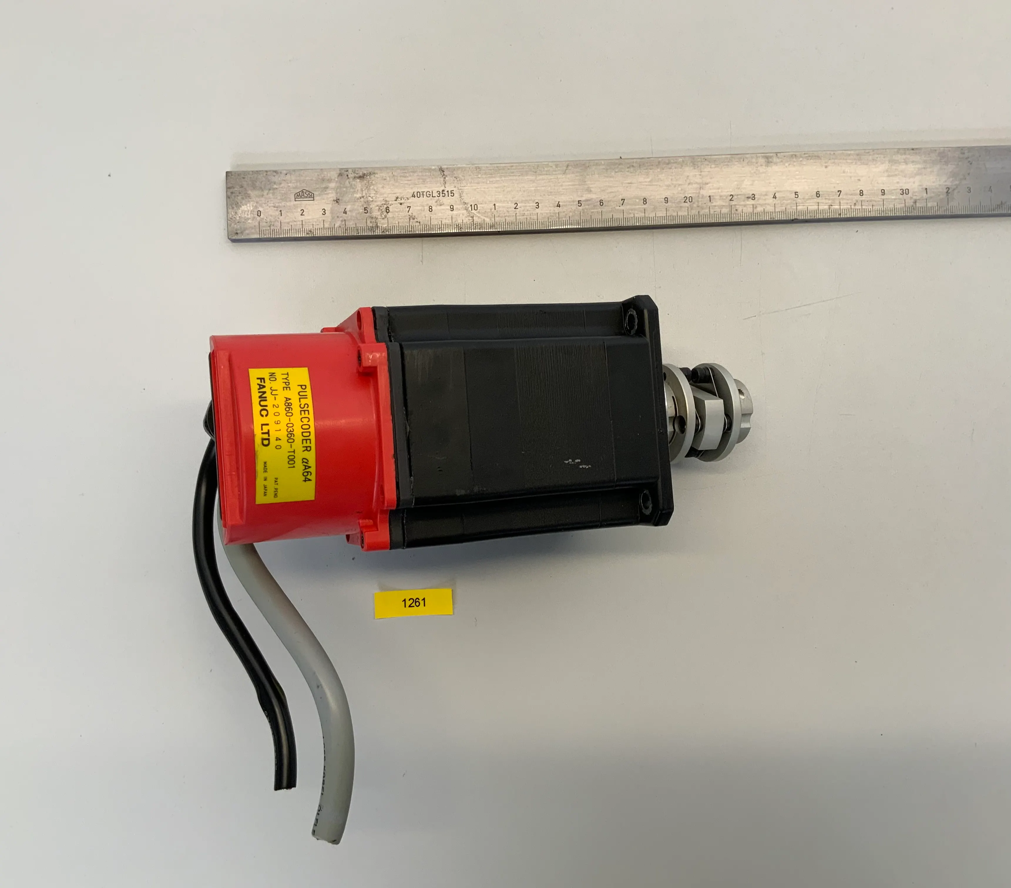 Zum Verkauf steht ein FANUC Motor A06B-0371-B575 + Pulse Coder A860-0360-T001, das jeweils 23cm lang ist.