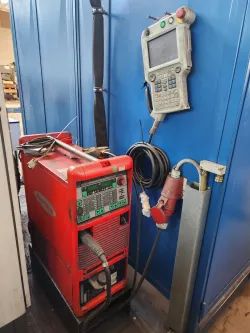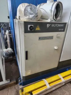 Zum Verkauf steht ein gebrauchter Industrieroboter des Typs Yaskawa Motoman UP50N, inklusive Steuerungsschrank und Schweißgerät. Zusätzlich sind zahlreiche Bedienungsanleitungen im Lieferumfang enthalten.