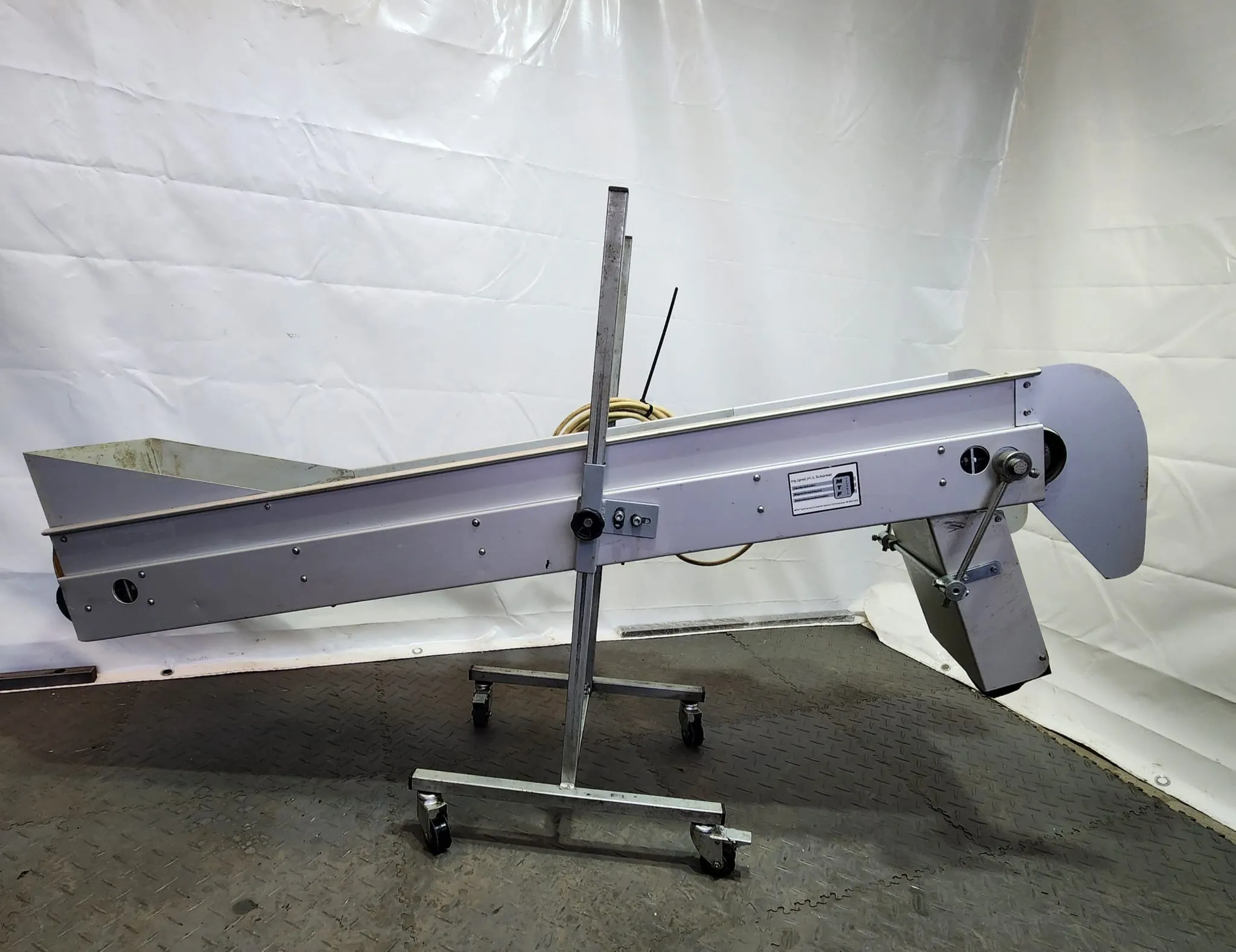 Es wird ein gebrauchtes Förderband (ca. 150 x 30 cm) auf Rollen verkauft.