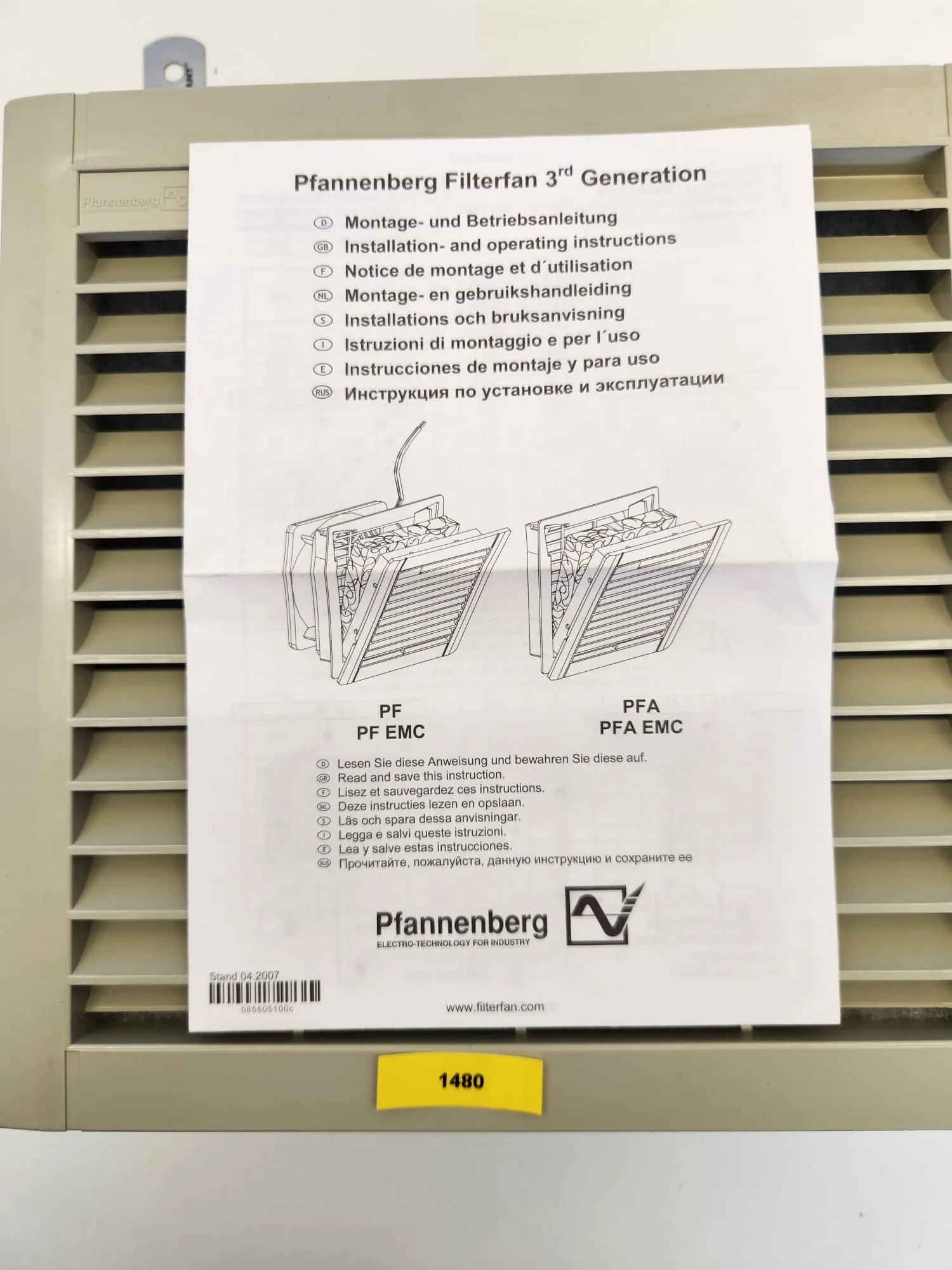Zum Verkauf steht ein Filterlüfter des Typs PF3000 vom Hersteller Pfannenberg. Eine Montage- und Betriebsanleitung ist im Lieferumfang enthalten.