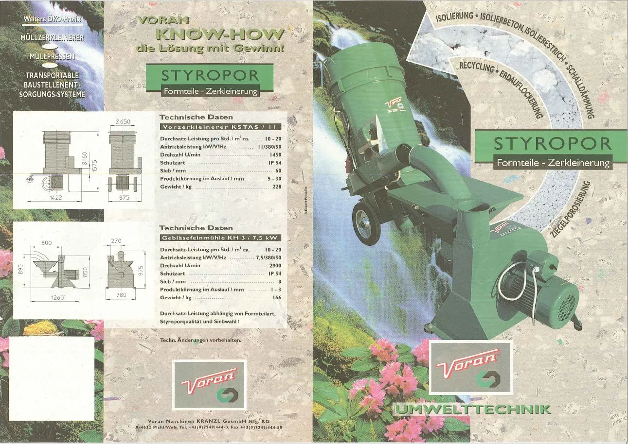 Die VORAN KH3 ist eine professionelle Styropor-Feinmühle (EPS-Feinmühle) zur präzisen Feinvermahlung von vorzerkleinertem Styropor/EPS. Sie ist speziell dafür ausgelegt, Material nach einem Vorbrecher (z. B. KSTAS) in einem zweiten Schritt auf feine Granulatkörnung zu bringen. Ideal für Recyclingbetriebe und Unternehmen, die EPS-Formteile effizient weiterverarbeiten und Volumen sowie Logistikkosten reduzieren möchten.