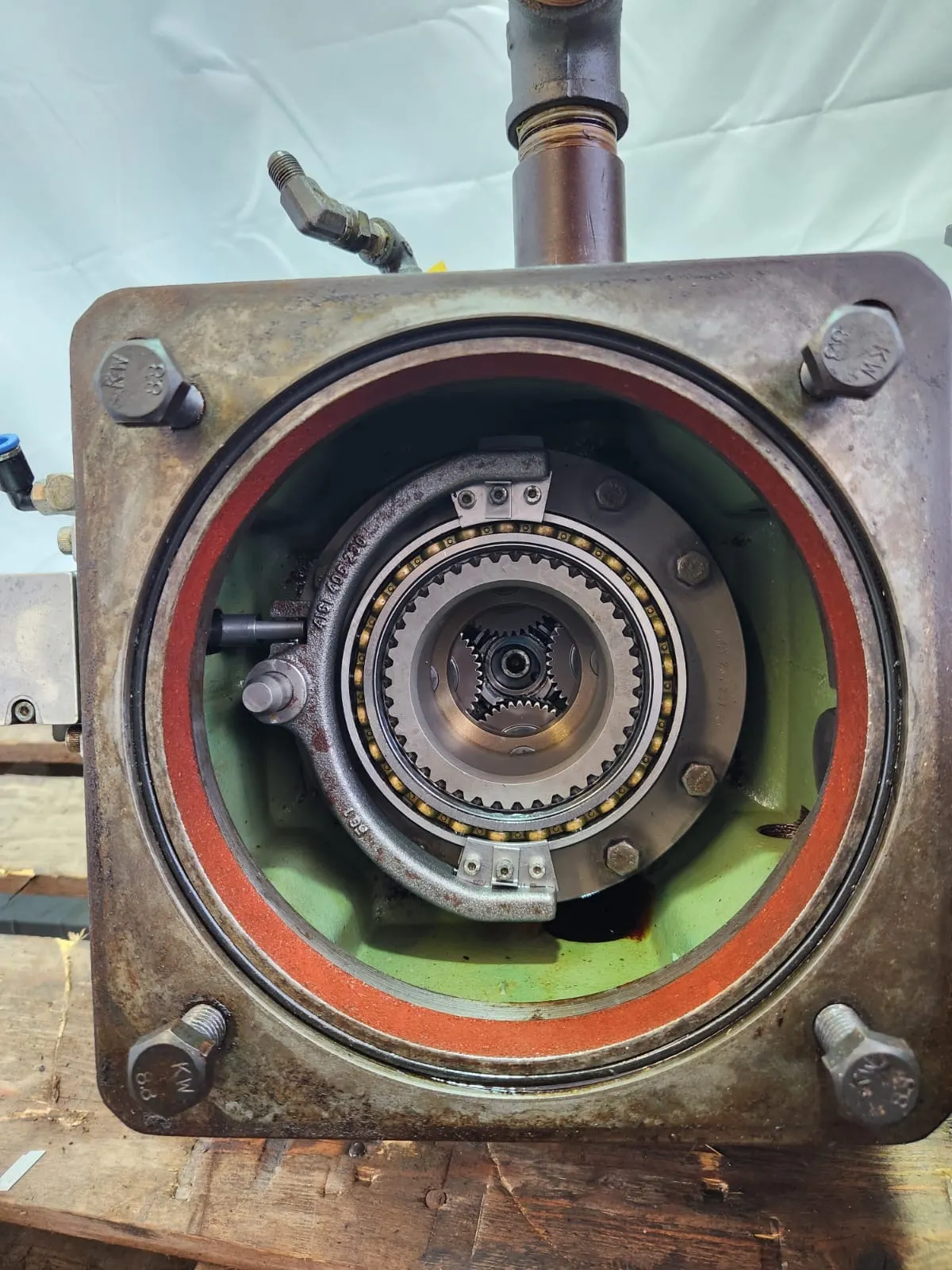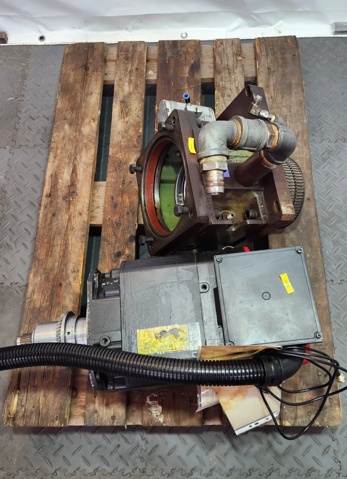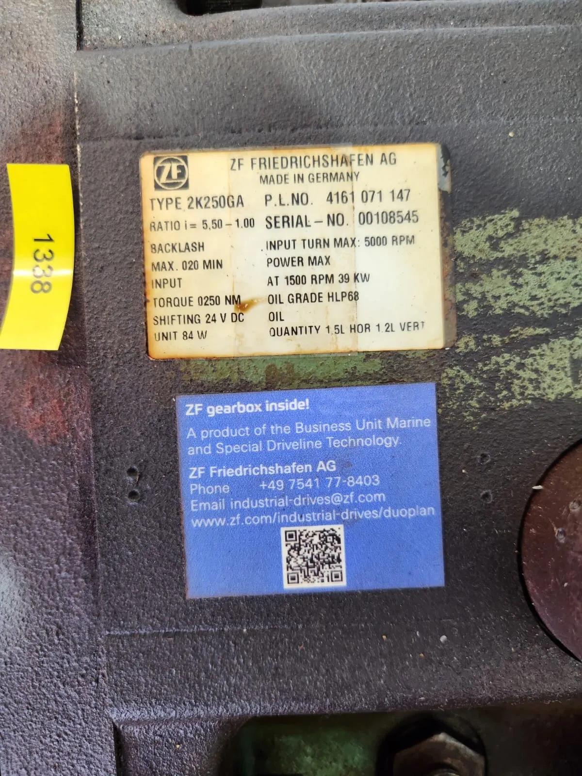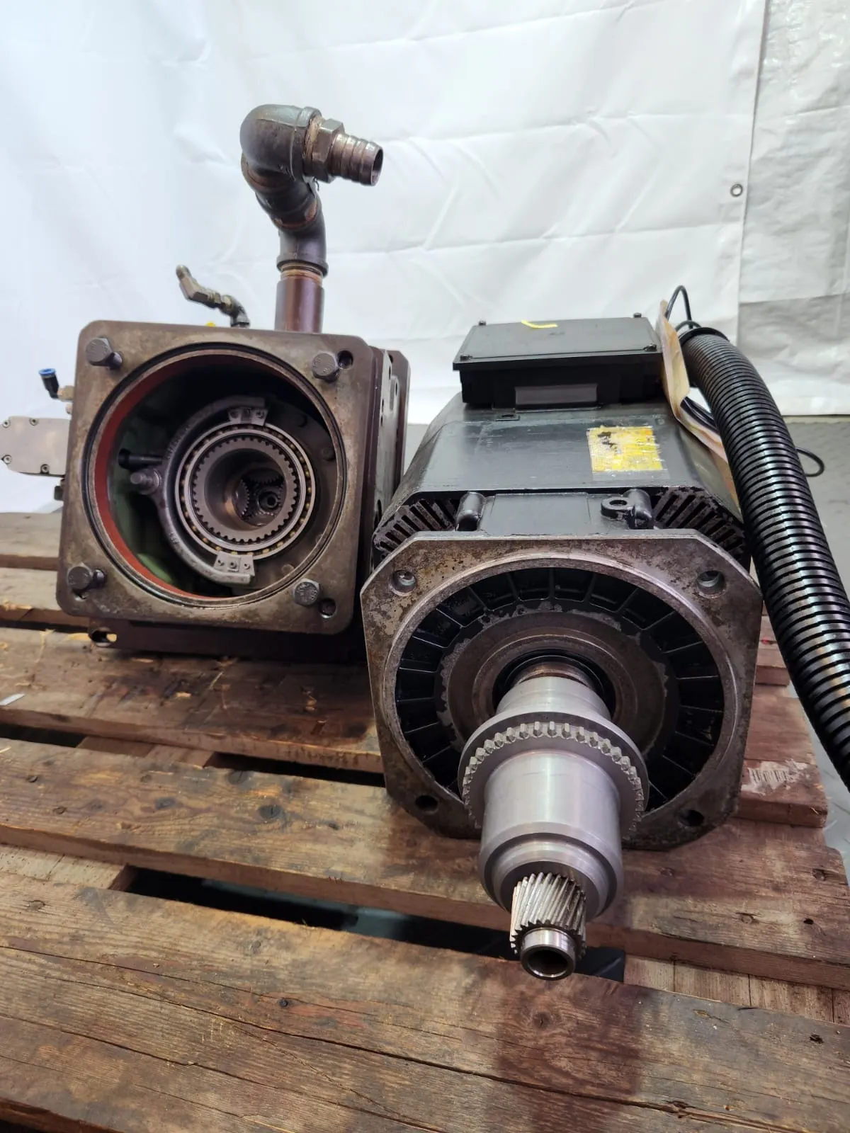 Zum Verkauf steht ein ZF Zweigang-Schaltgetriebe 2K250GA mit ein FANUC AC Servomotor α12/7000.