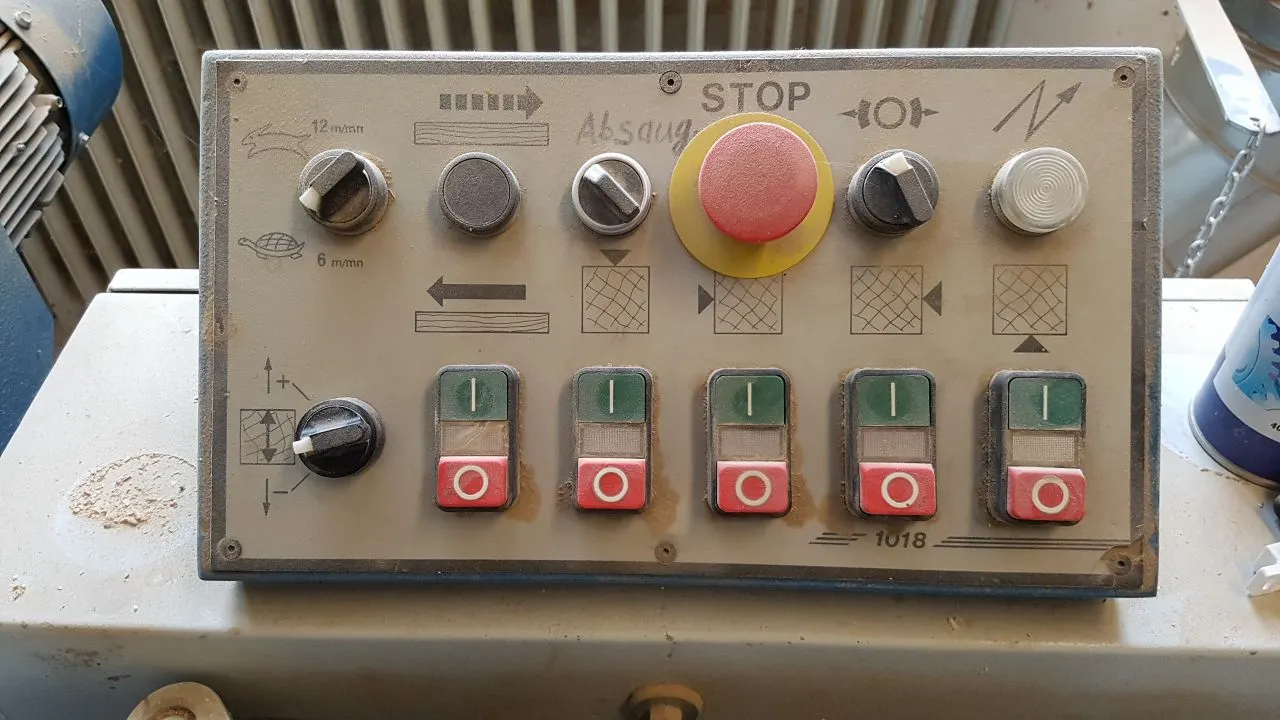Die Maschine ist mit 4 Hobelwellen ausgestattet: horizontal unten (4 kW), vertikal rechts (3 kW), vertikal links (3 kW) und horizontal oben (4 kW). Dank der 2 Vorschubgeschwindigkeiten (6 und 12 m/min) kann sie flexibel an unterschiedliche Anforderungen angepasst werden.