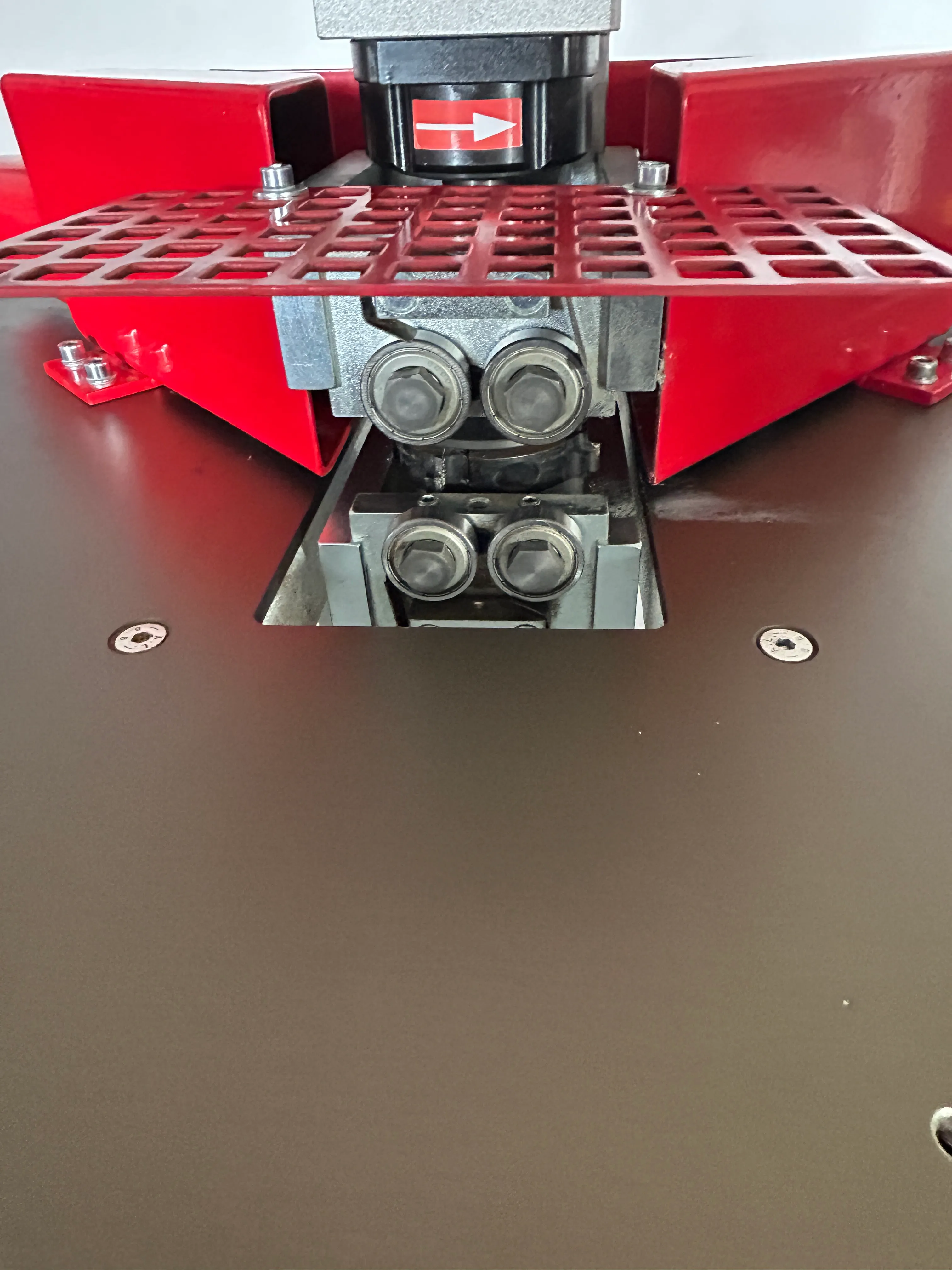 Die beiden vertikal arbeitenden HF-Bündigfräsmotoren, 18000 U/min. sind mit Wendeplattenmesser (R=2 mm) ausgestattet.