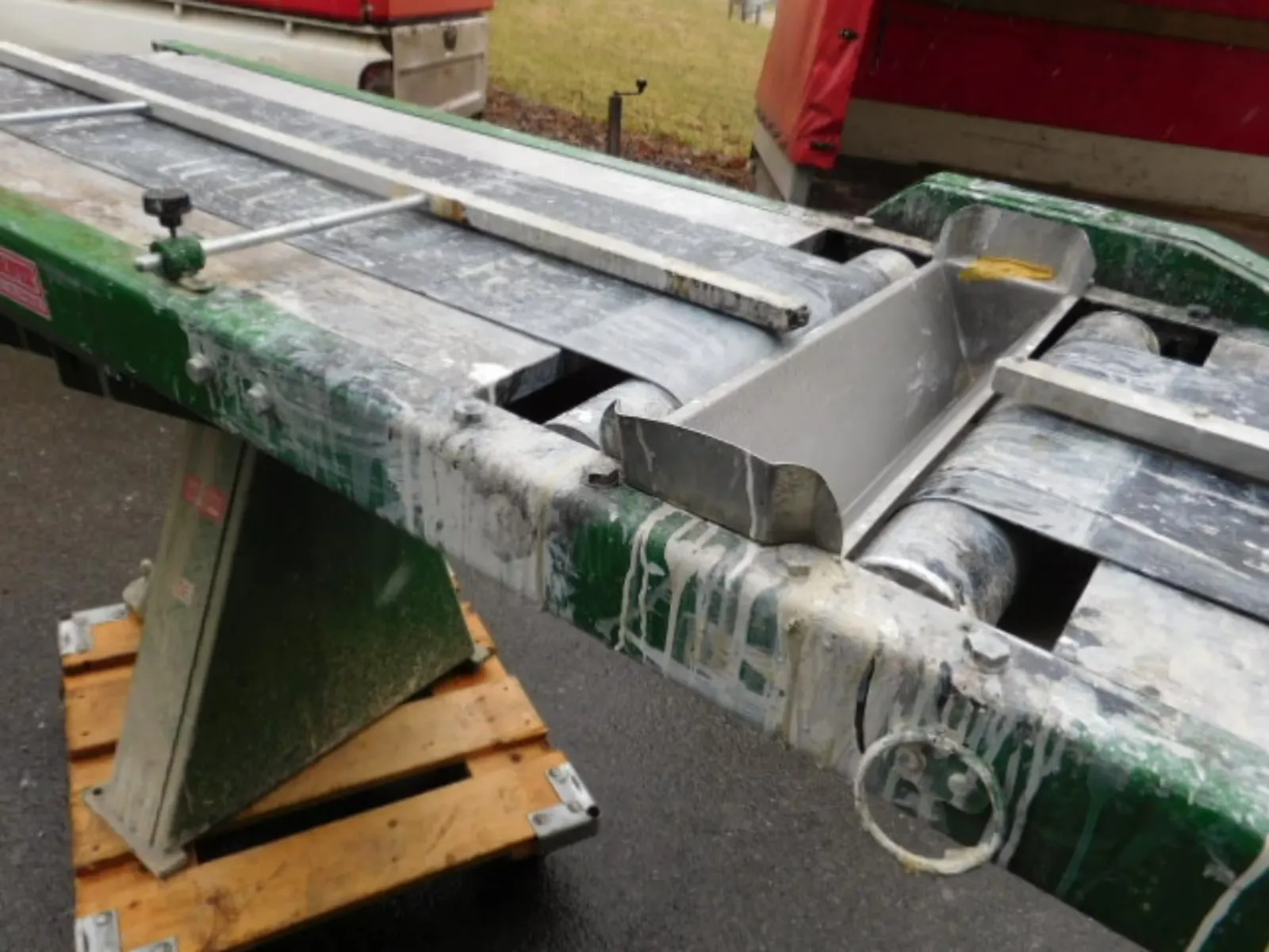 Das Transportband wird schräg gestellt und der Giessvorhang legt sich auf Fläche und Kante