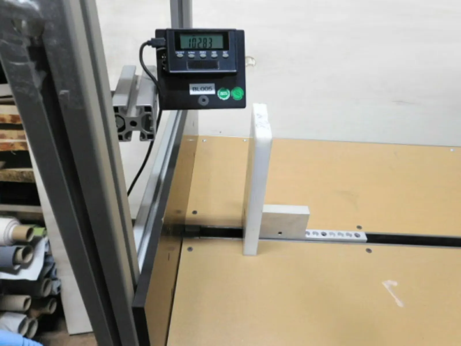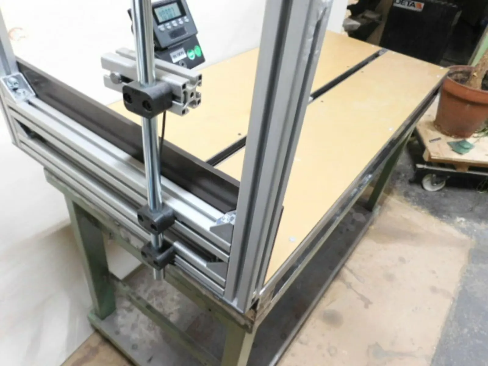 ca 500 mm Beit und 1200 mm langer Tisch mit max Messlänge ca 960 mm