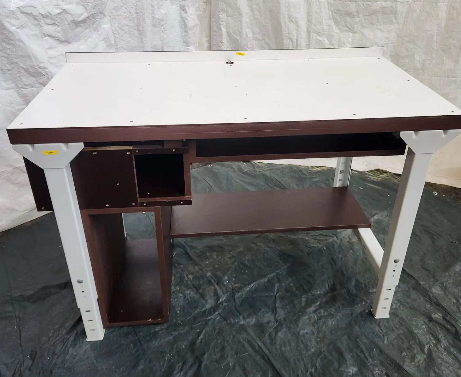 Es wird ein Computertisch mit verstellbaren Beinen verkauft.