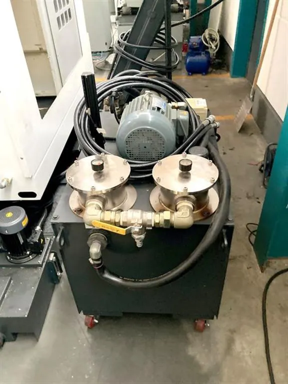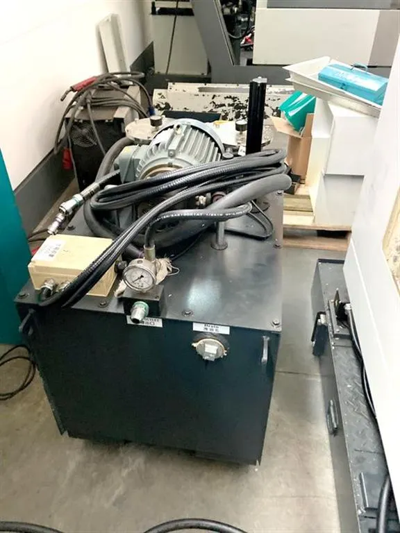 Zusätzliche Informationen: Stabiles Vertikal-Bearbeitungszentrum mit Flachführungen, - IKZ 30 bar, - Späneförderer - Kühlmitteleinrichtung mit Patronenfilter, - Flachführungen - el Handrad - Vorbereitung 4. Achse - Messtaster RENISHAW OMP 60, - indirektes Messsystem - SK 40 Werkzeughalter (ca. 30 Stck.) incl. 2 fahrbaren Werkzeugregalen ca. 6.000 Spindelstunden