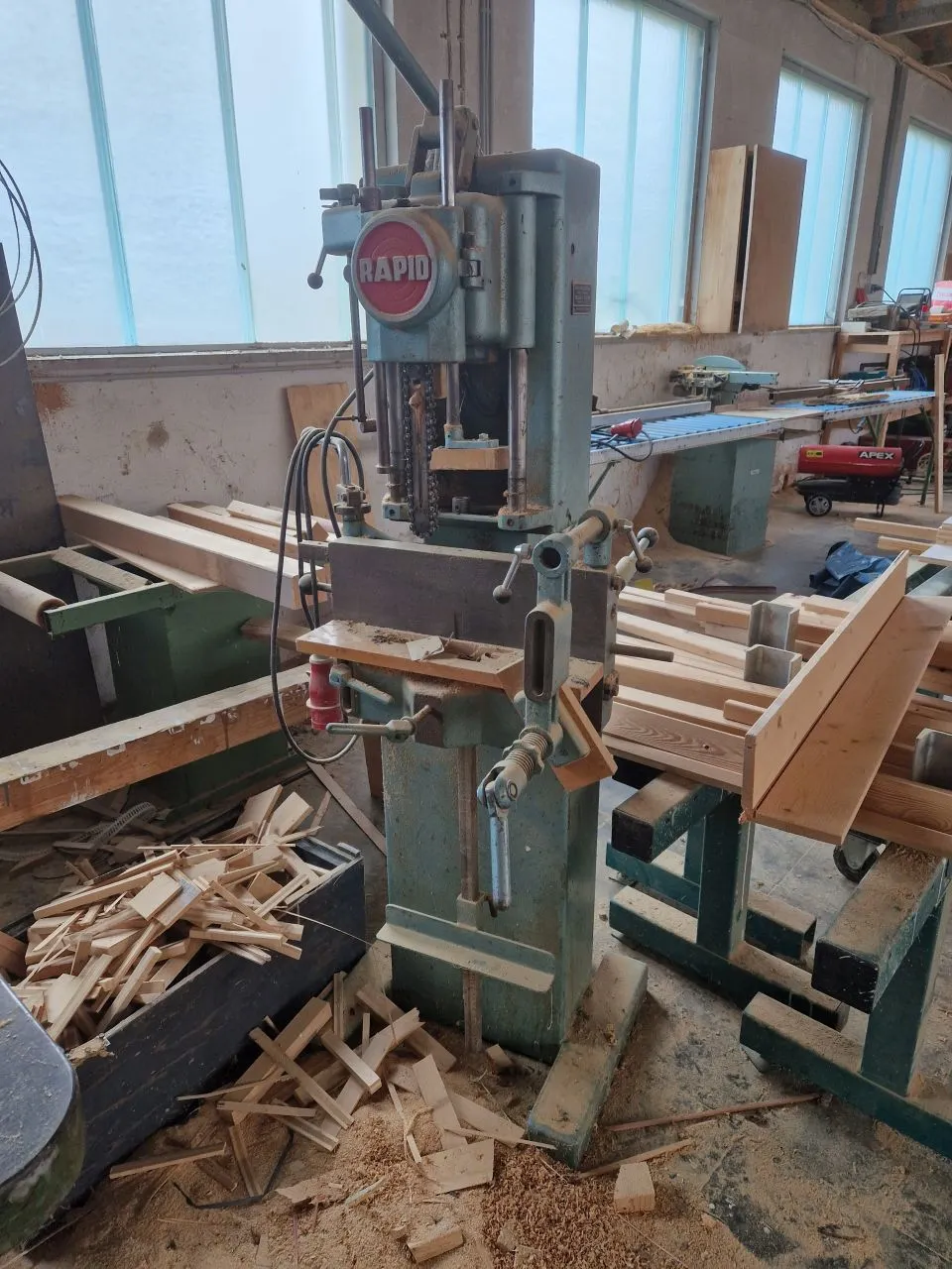 Die Kettenfräse RAPID MSK ist eine robuste und zuverlässige Ständerkettenfräse, ideal für präzise Fräsarbeiten in der Holzverarbeitung, insbesondere zum Erstellen von Nuten, Schlitzungen und Ausnehmungen. Dank der verschiedenen mitgelieferten Fräsgarnituren lässt sich die Maschine flexibel für unterschiedliche Bearbeitungsaufgaben einsetzen.