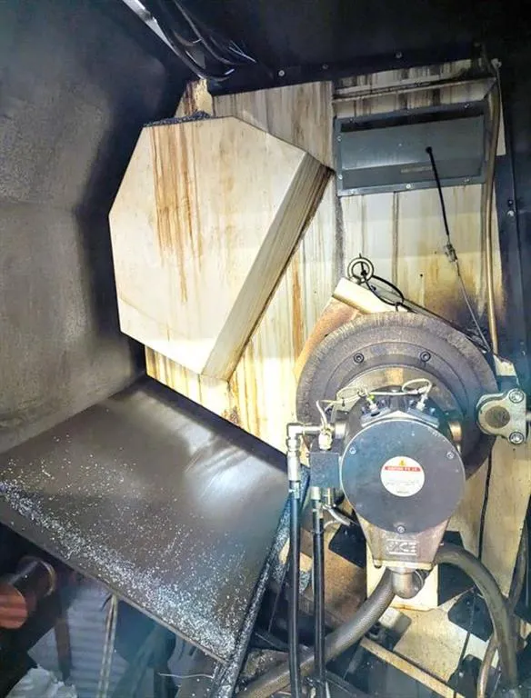 Lager-Nr: 1032-03940 Maschinentyp: CNC Drehmaschine Fabrikat: HWACHEON Typ: HI TECH 450 AL YMC Baujahr: 2012 Steuerungsart: CNC Steuerung: FANUC 0i-TD Lagerort: Karlsbad Ittersbach Halle 1 Ursprungsland: Korea Lieferzeit: sofort Frachtbasis: ab Ausstellungshalle, frei verladen Zusätzliche Informationen: CNC Drehmaschine mit Y-Achse und angetriebenen Werkzeugen, C-Achse, tool eye Hydraulik-Futter D = 250 mm, verstärkte Kühlmittelpumpe 15bar, Spannzylinder mit Spanndruckkompensation, 2-stufiger Spanndruck, Grundplatte für Anbau einer Lünette, progr. Reitstock mit Schleppeinrichtung, angetriebene Werkzeuge 3,7 kW, Drehzahl 3.000 1/min, Späneförderer, 1 angetriebenes Werkzeug ist im Lieferumfang enthalten ca. 15.500 Betriebsstunden Drehdurchmesser: 420 Eilgang X + Z - Achsen: 20 / 24 m/min Umlaufdurchmesser über Schlitten: 550 mm Gesamtantriebsleistung: 50 kVA Revolverkopf (x-fach): 12 Drehzahl: 3500 1/min Hohlspannzylinder mit Stangendurchlaß bi: 76 mm y-Achse: +/- 60 mm Antriebsleistung: 22 / 18,5 kW Umlaufdurchmesser über Bett: 700 mm Raumbedarf ca.: 4,10 x 2,05 x 2,21 m Spitzenweite: 1390 mm Anzahl Revolver: 1 / 12 x BMT Gewicht: 7,8 t Drehlänge: 1230 mm