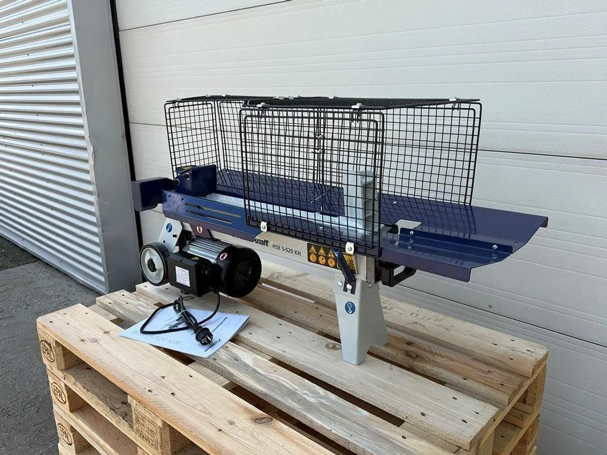 Holzspalter Holzkraft Typ HSE 5-520 KH zum komfortablen und sicheren Spalten von Kurzholz für den privaten oder semiprofessionellen Einsatz. Die kompakte Bauweise und die einfache Bedienung ermöglichen effizientes Arbeiten auch auf engem Raum. Ideal für die Brennholzvorbereitung.