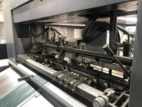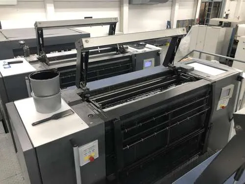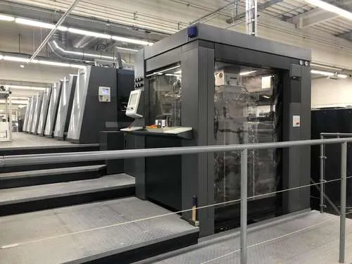 Ausstattung: - Non-stop Ausleger Lackiereinheit mit Kammerrakelsystem Druckzylinderwascheinrichtung - automatisch Farbwalzenwascheinrichtung - automatisch Gummituchwascheinrichtung - automatisch Non-stop Anleger Auslageverlängerung X3Heidelberg Logistics Preset Plus Anleger Preset Plus Ausleger AutoPlate Advanced Rasterwalzenwechsler Multi Loader Model 18000 Sh/hPrinect Inpress Control Prinect Press Center StaticStar - Antistatikausrüstung CoatingStar - Lackversorgung CombiStar - Feuchtmittelaufbereitung + Farbwerktemperierung FilterStar - Zweistufiges Filtersystem AirStar Pro - Zentraler Luftversorgungsschrank ScrollStar - Druckluftversorgung CleanStar - Puderabsaugung DryStar Combination - IR + Heißlufttrockner + UVZwischentrocknerpositionen 1-6InsertStar - Streifeneinlegesystem PowderStar - Pudergerät