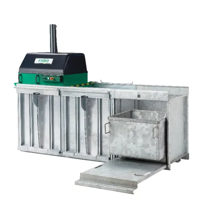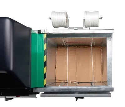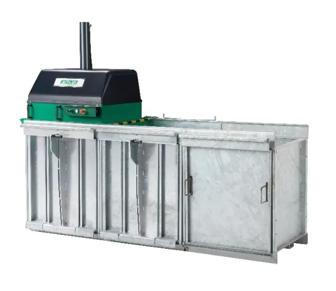 Mehrkammerpresse mit 3 Presskammern zum Sortieren und Pressen in einem System. Abfälle werden direkt in getrennte Pressbehälter gesammelt und anschließend zu handlichen Paketen (ca. 30–40 kg) verdichtet. Ideal für Betriebe, die mehrere Abfallfraktionen platzsparend trennen und verdichten wollen – ohne zusätzliche Maschinen und mit ergonomischer Bedienung.