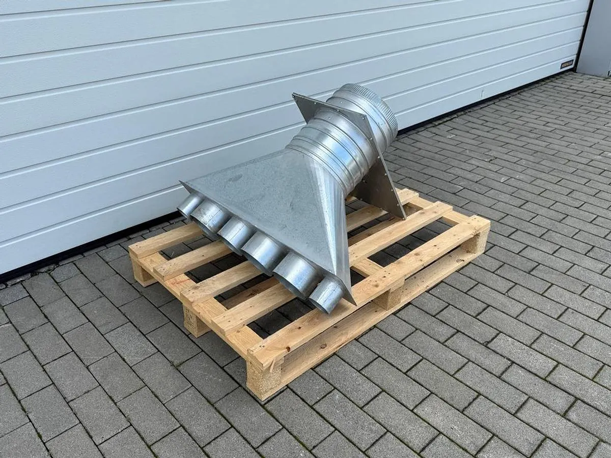 Absaugsammler mit 6 Anschlüssen und elektrischem Schieber. Der Schieber ist reparaturbedürftig.