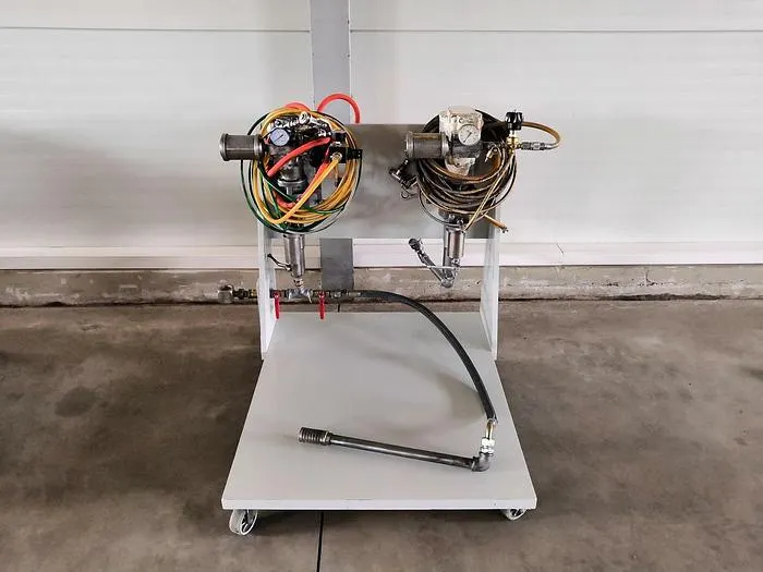 Druckluftgetriebene Kolbenpumpe, Nr. 1: K. Schmidt Typ DC 30.20/4, Nr. 2: BEDE AIRLESS, max. ca. 36 l/min.