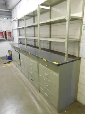 ohne die abgebildete Arbeitsplatte zwischen den Schubschränken und dem Regal