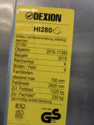 Fachbodenregal Dexion HI280 255 breit 250 hoch und 61 cm tief verzinkt