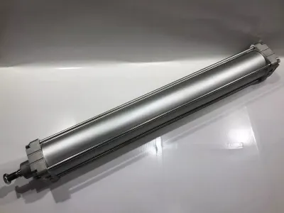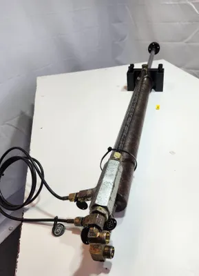 Zum Verkauf steht ein gebrauchter Hydraulikzylinder, das doppeltwirkend ist.
