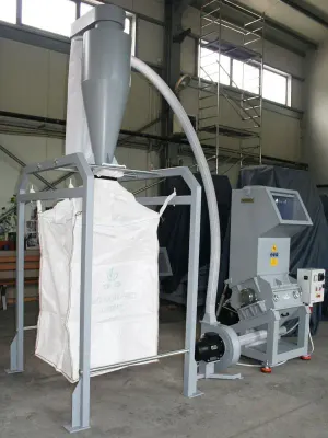 Effiziente Abfüllstation zum Befüllen von Big Bags (bis 1,5 m³) oder Oktabins mit Mahlgut und Granulaten. Integriertes Fördergebläse sorgt für schnelle, saubere und präzise Befüllung – ideal für industrielle Anwendungen im Recycling und in der Kunststoffverarbeitung.