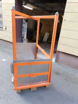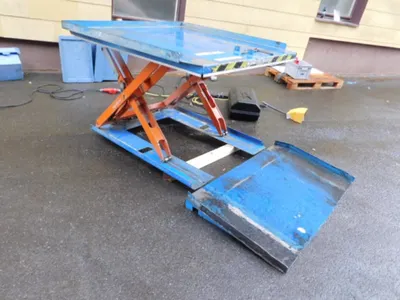 mit dabei ist ein Auffahrkeil ca 140 x 77 cm mit dem man mit einem Transportwagen auf die obere Plattform fahren kann